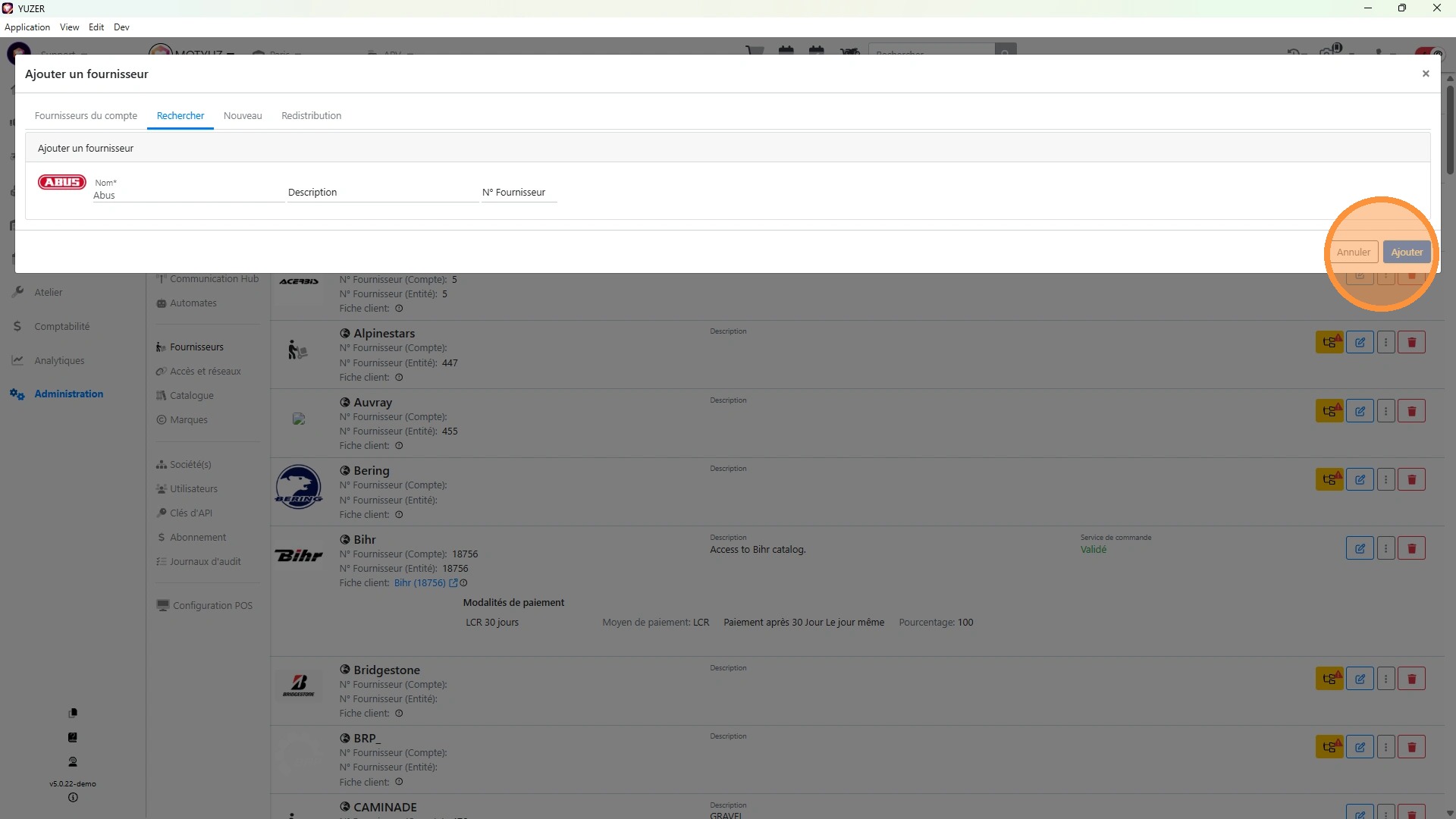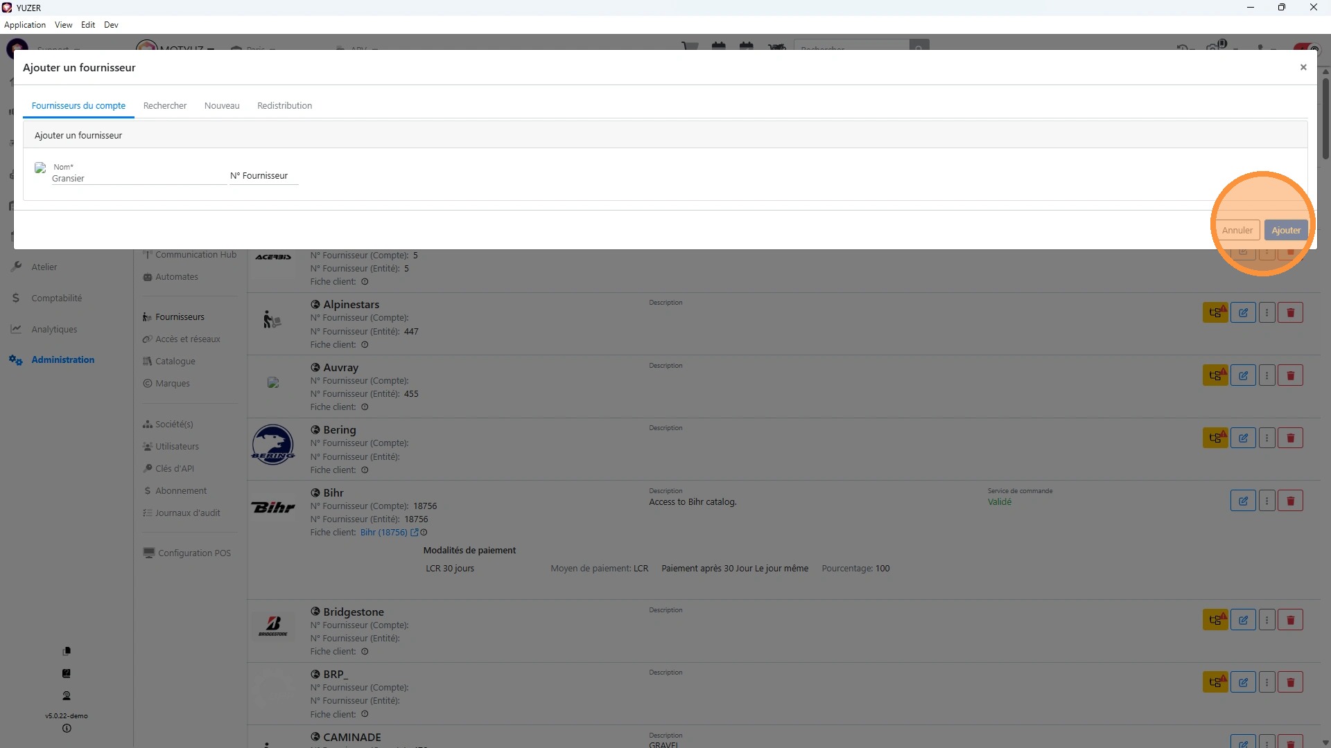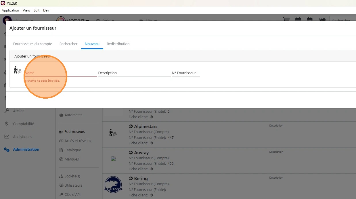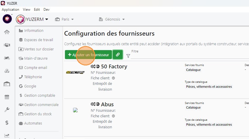 Ajouter un fournisseur n'utilisant pas Yuzer pour son exploitation et connu de Yuzer