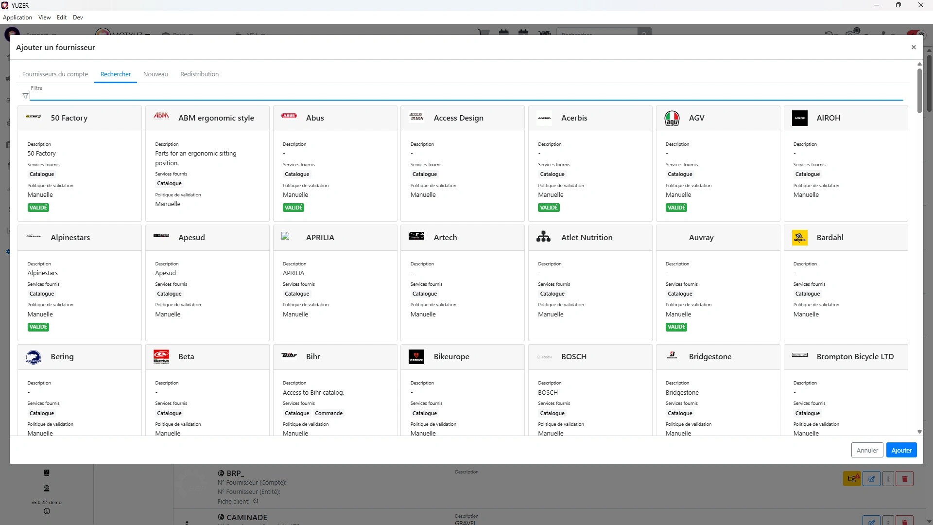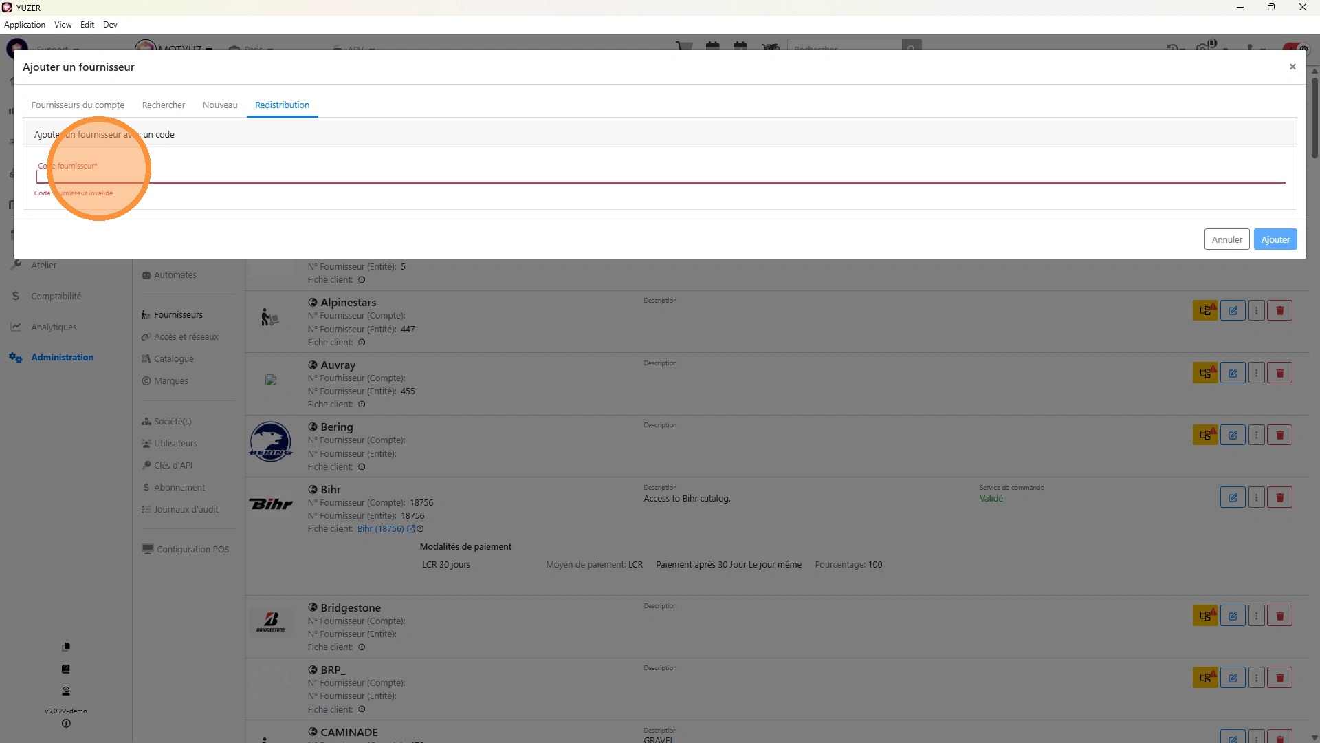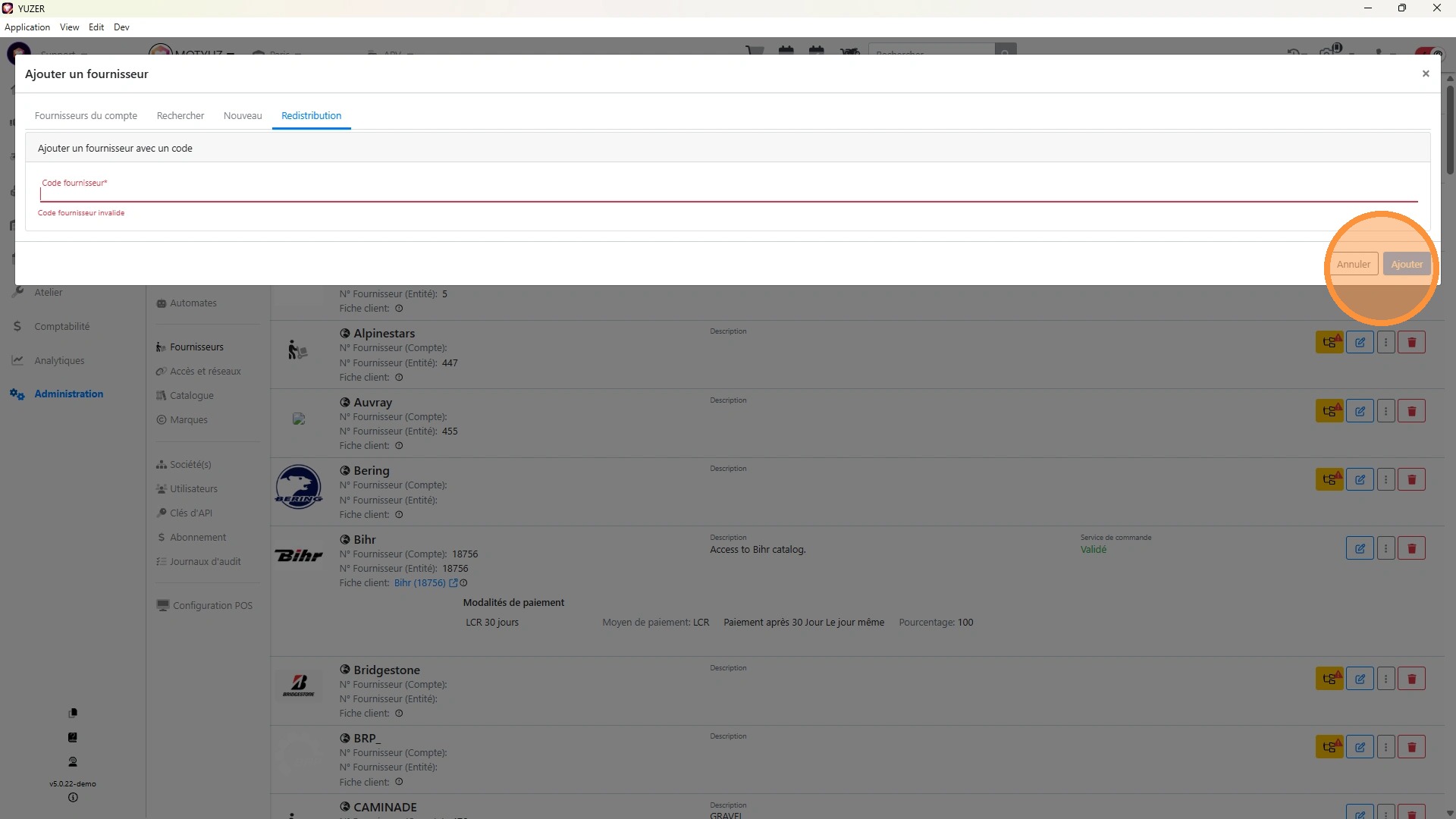 Ajouter un fournisseur n'utilisant pas Yuzer pour son exploitation et connu de Yuzer