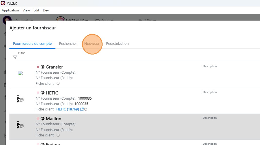 2\. Cliquer sur l'onglet [[" Fournisseurs"]]