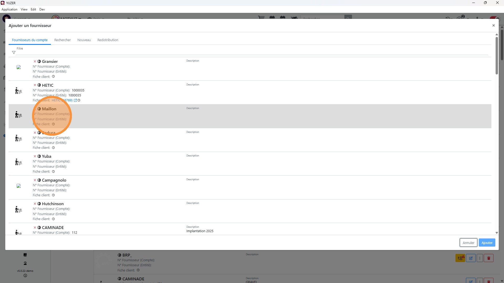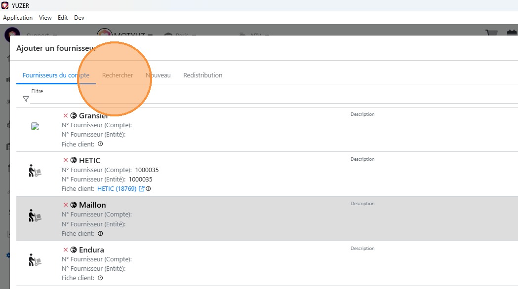 4\. Rechercher puis cliquer sur le [[Fournisseur]] souhaité