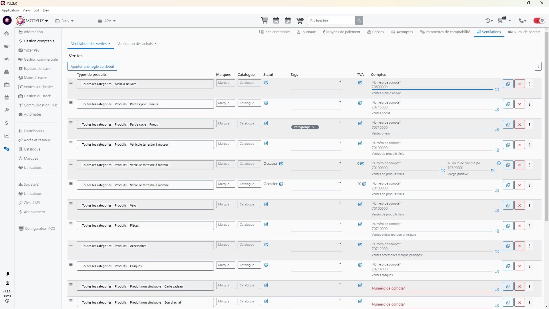 Configurer les ventilations comptables