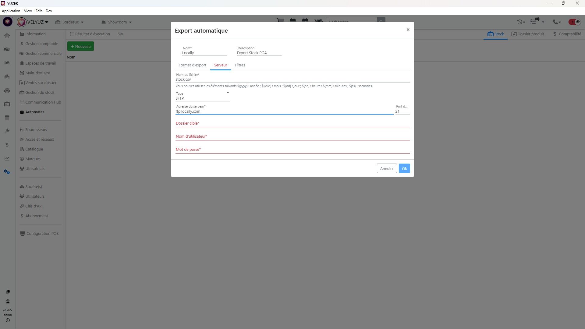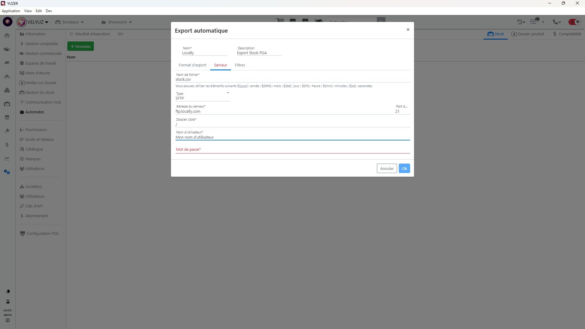 Configurer l'export automatique sur un SFTP pour Locally de mes stocks