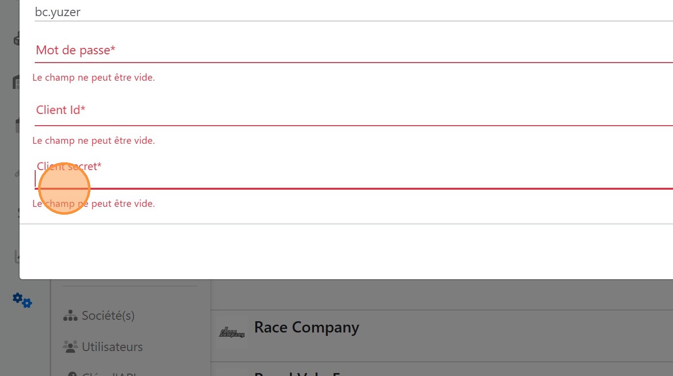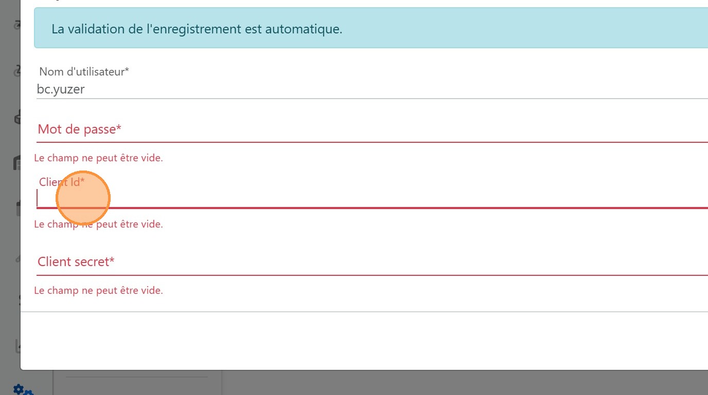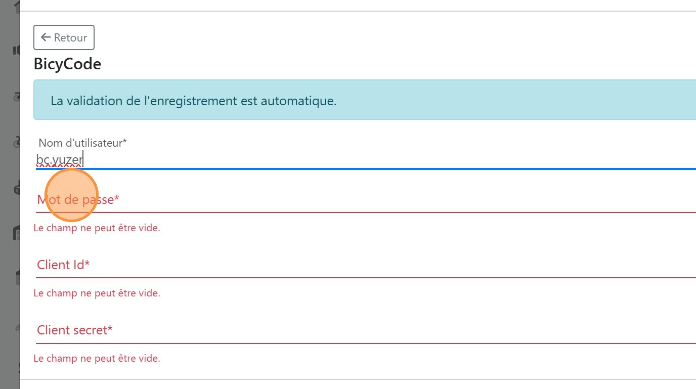 8\. Renseigner le [[Client secret]] fourni par Bicycode
