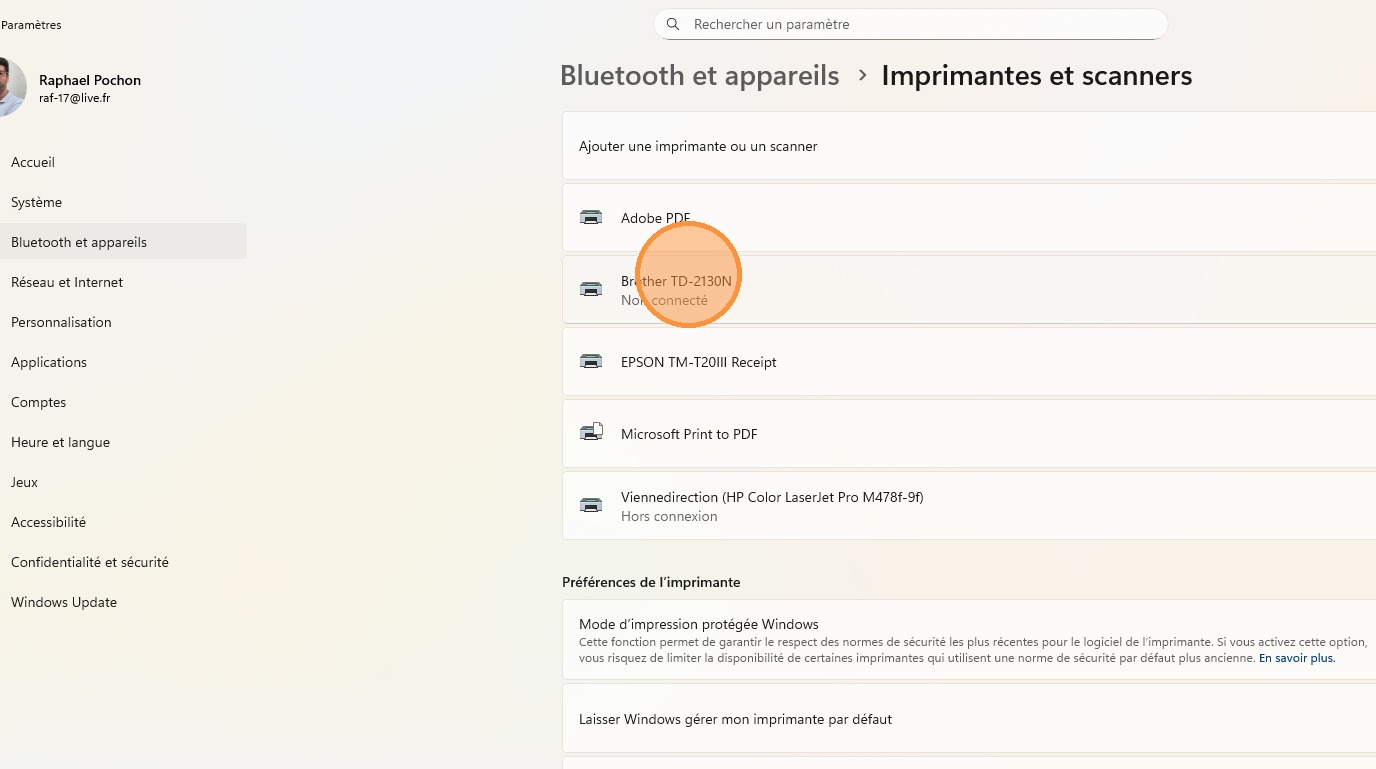 4\. Sélectionnez votre imprimante dans la liste