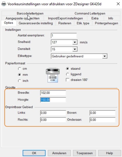 6\. Renseigner la taille de vos étiquettes