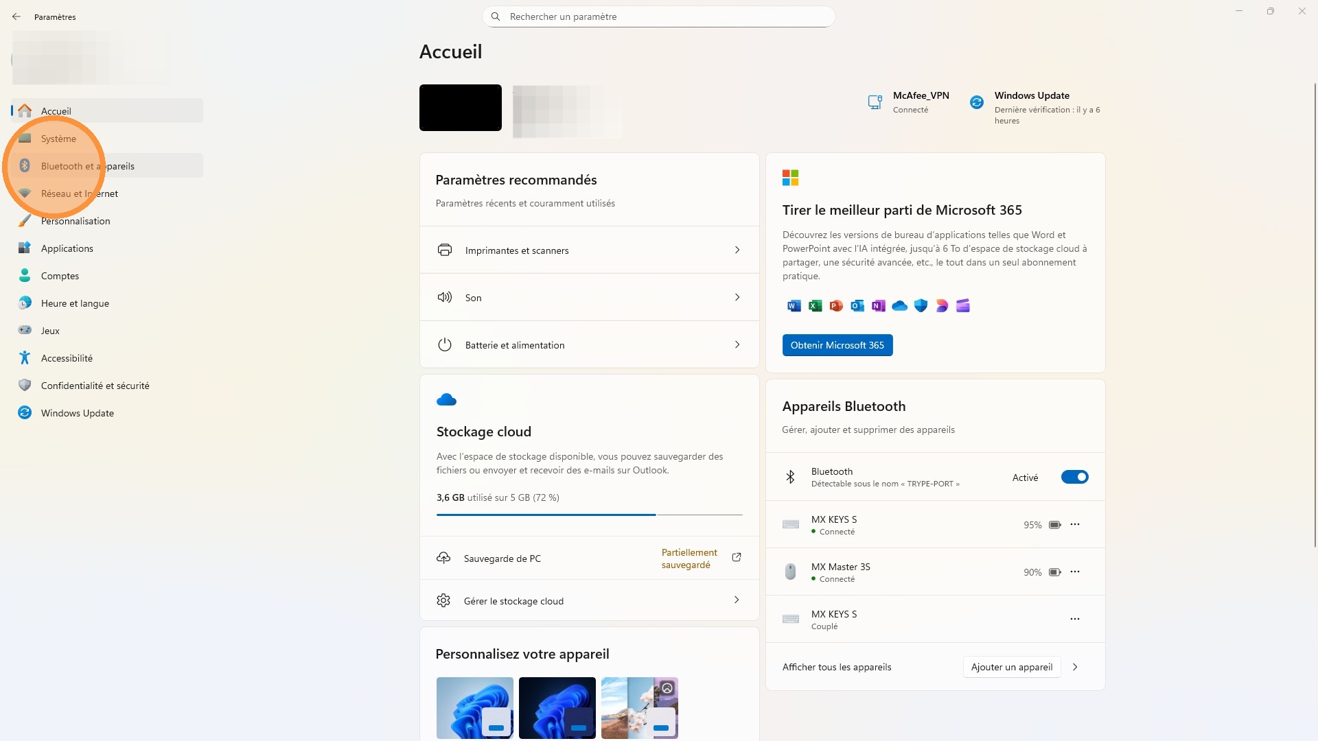 8\. Aller dans [[Paramètres]] via le menu [[Windows]], puis cliquer sur [[Bluetooth et appareils]]
