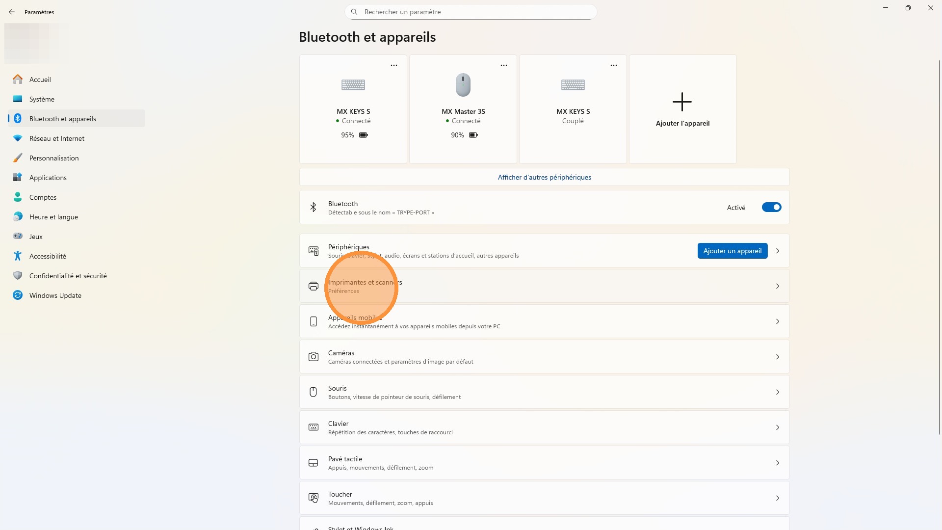 9\. Cliquer sur [[Imprimantes et scanners]]