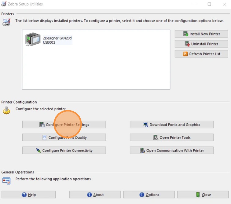 Configurer Zebra Setup Utilities