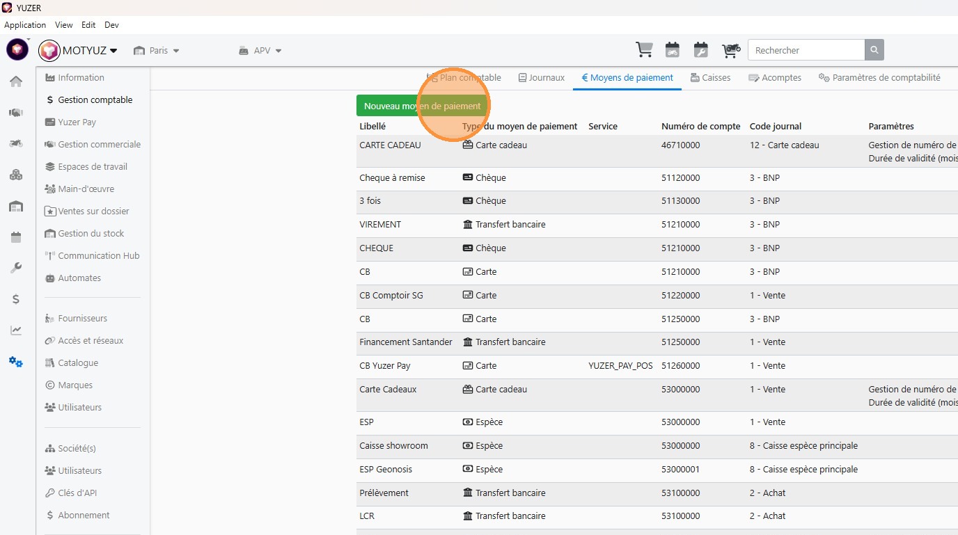 3\. Cliquer sur l'onglet [[Moyens de paiement]]