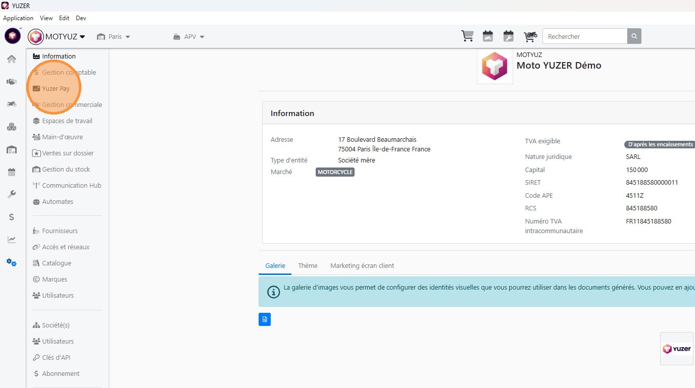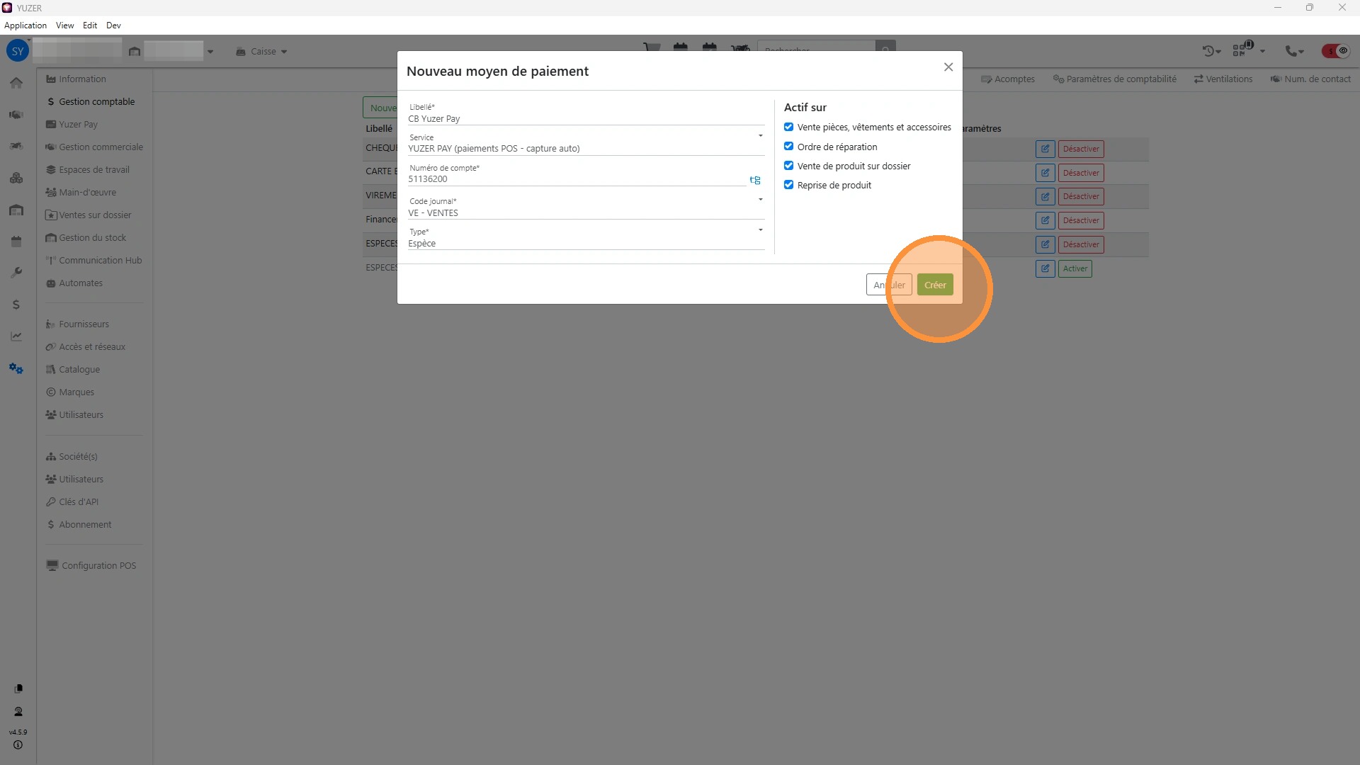10\. Cliquer sur l'onglet vertical [[Yuzer Pay]]