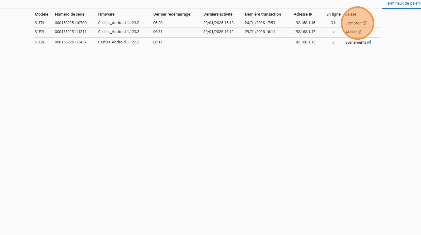 11\. Cliquer sur l'onglet [[Terminaux de paiement]] pour voir la liste des terminaux connecté à votre compte