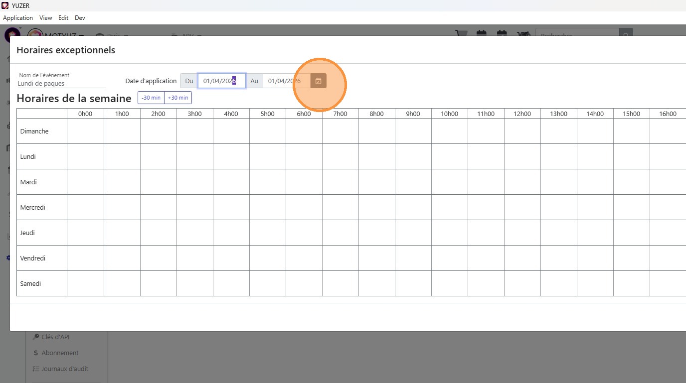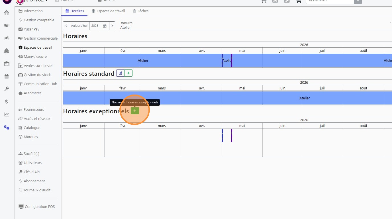 4\. Cliquer sur ajouter des horaires exceptionnels