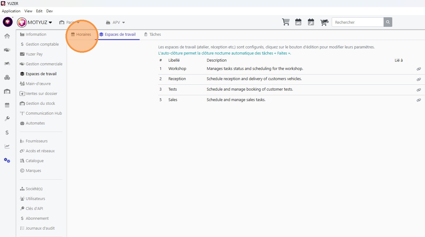 2\. Cliquer sur l'onglet vertical [[Espaces de travail]]