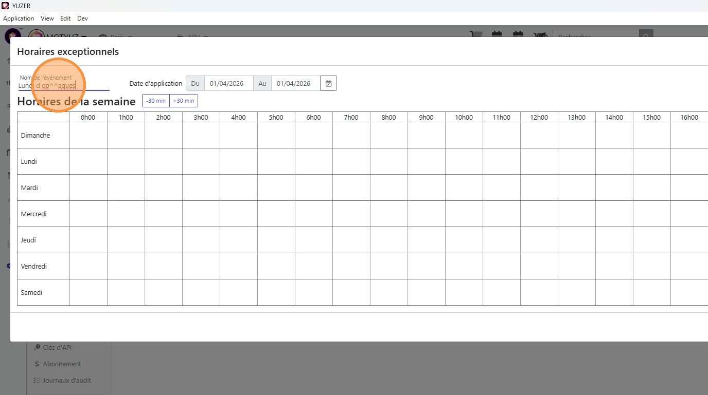 5\. Renseigner le [[nom]] de vos horaires exceptionnels