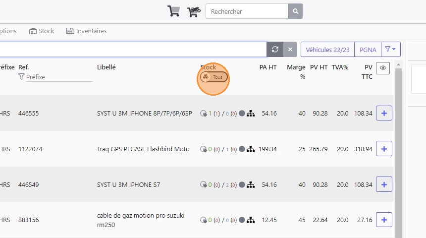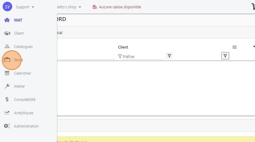1\. Aller au menu "Stock"
