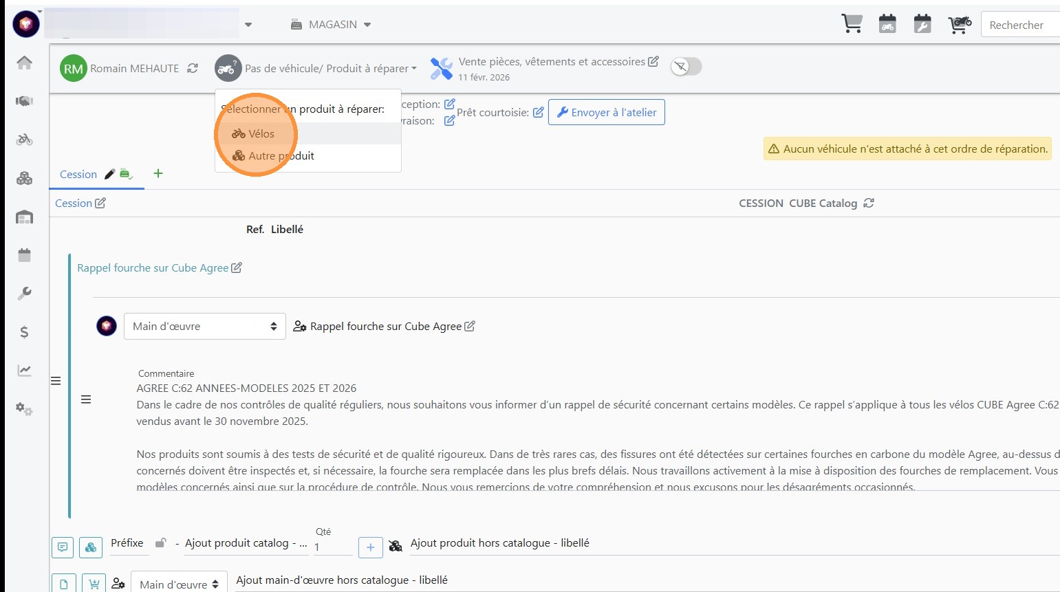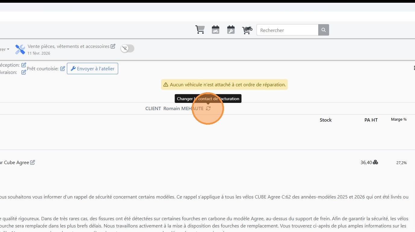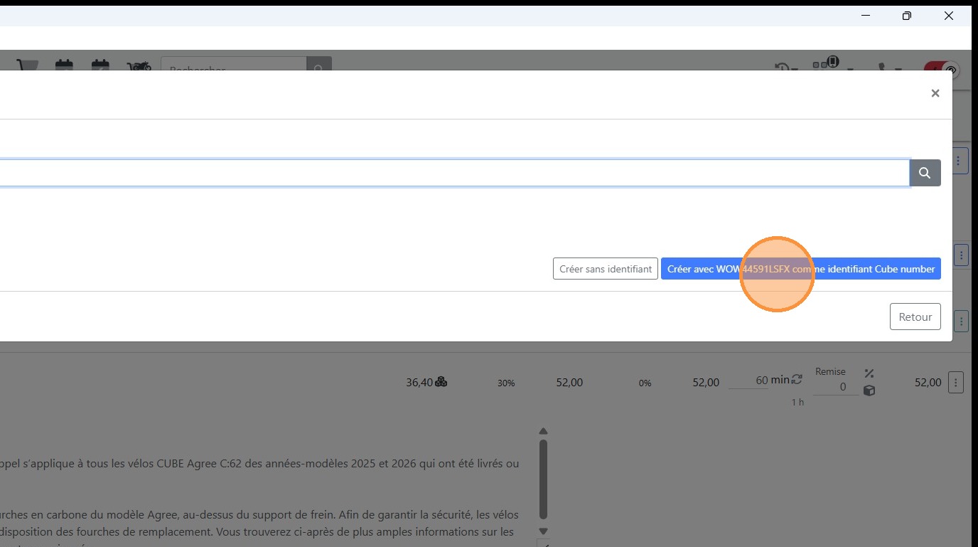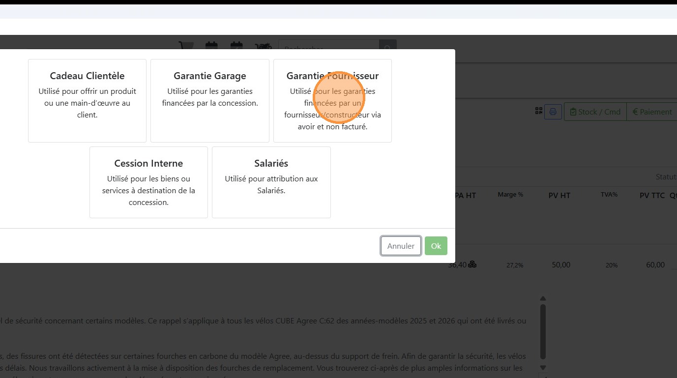 20\. Cliquer sur l'article correspondant au vélo à passer en garantie