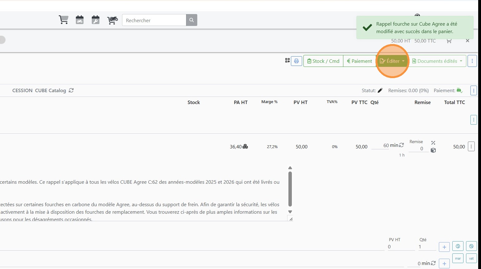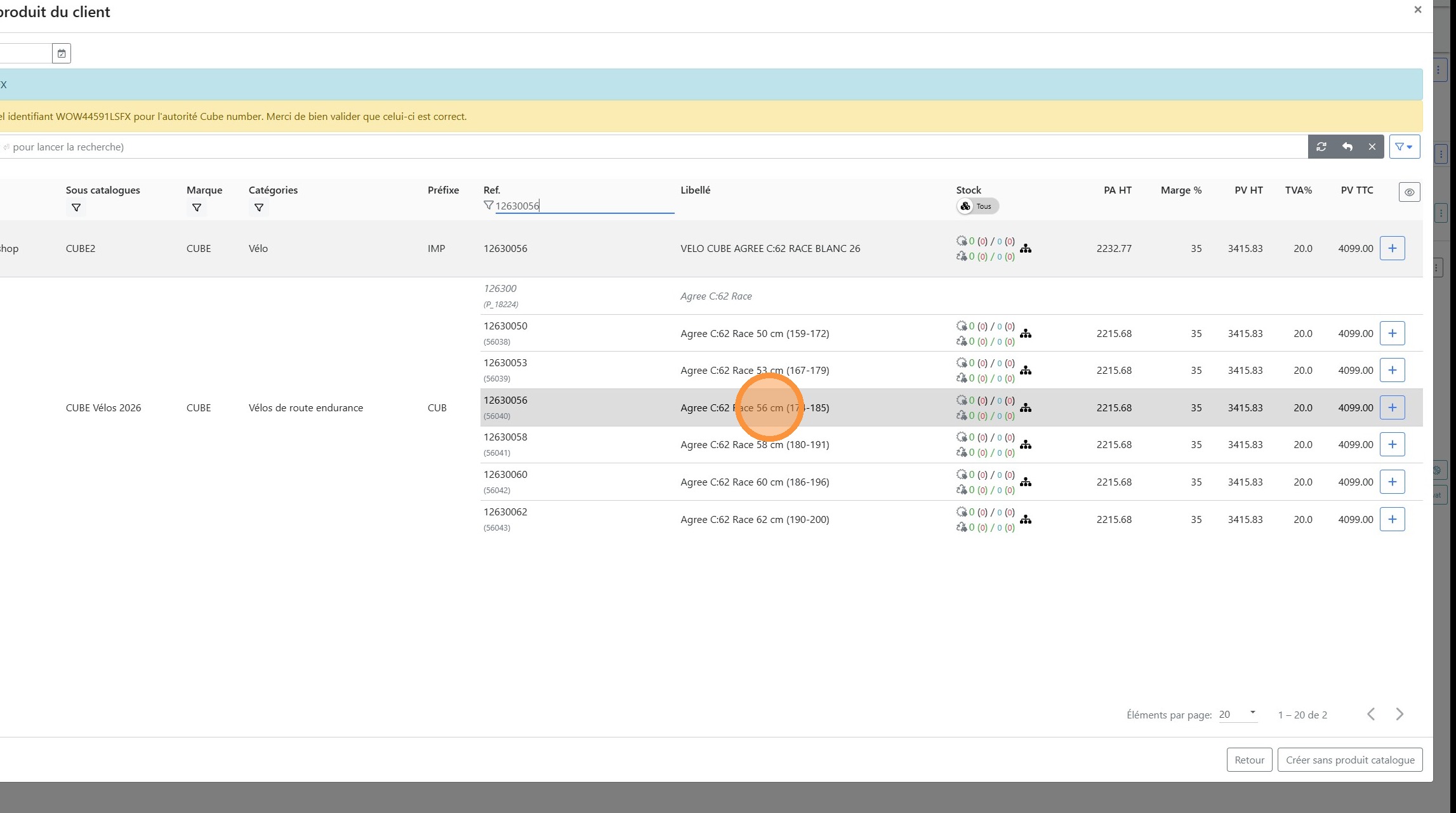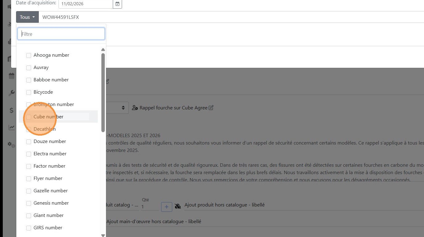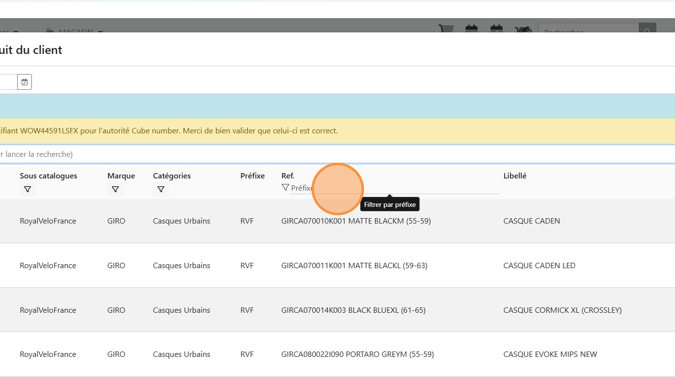 20\. Cliquer sur l'article correspondant au vélo à passer en garantie