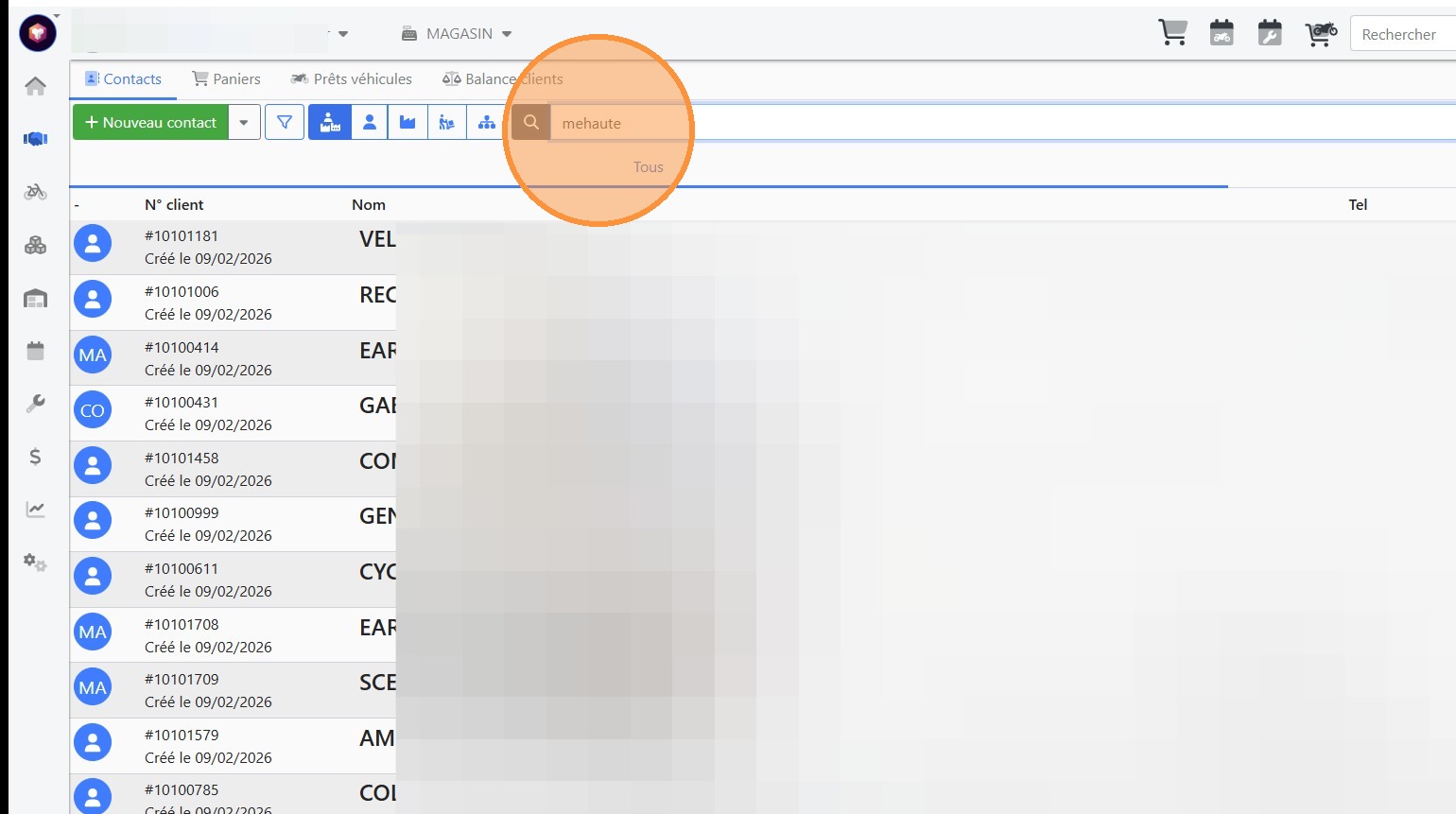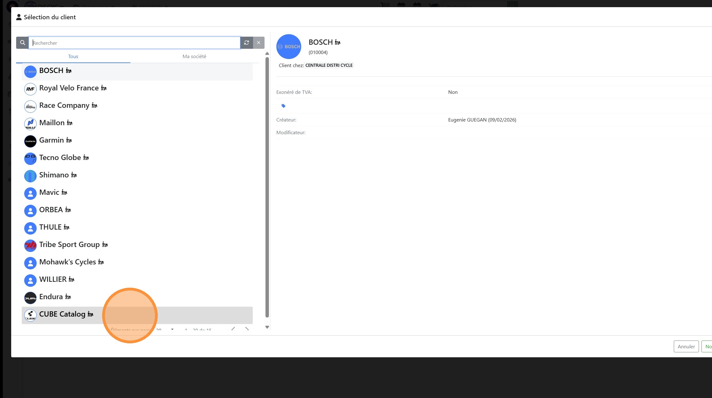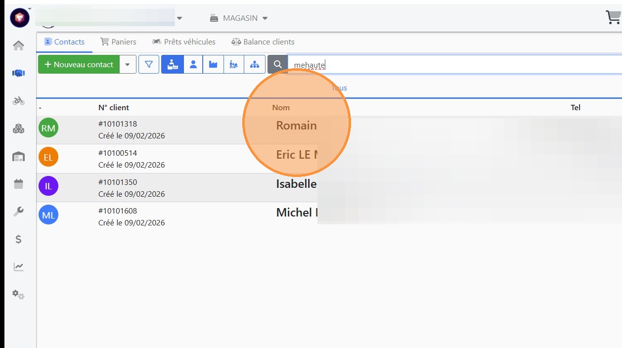 3\. Cliquer sur le client souhaité