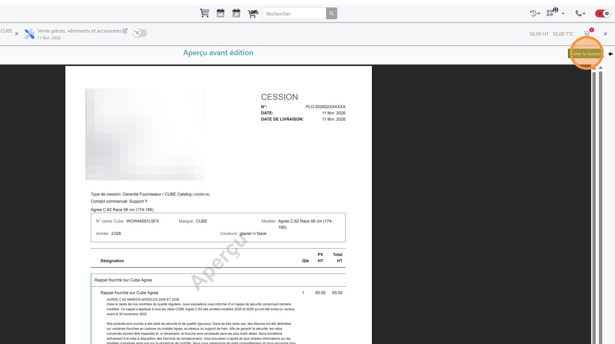 Editer une garantie fournisseur pour un rappel constructeur