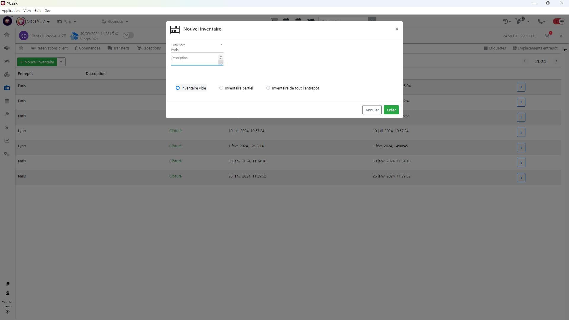 25\. Une fenêtre modale s'ouvre alors pour vous proposer de préremplir si ce n'est déjà fait votre inventaire avec les préparations clients et les accessoires montés sur les véhicules.\