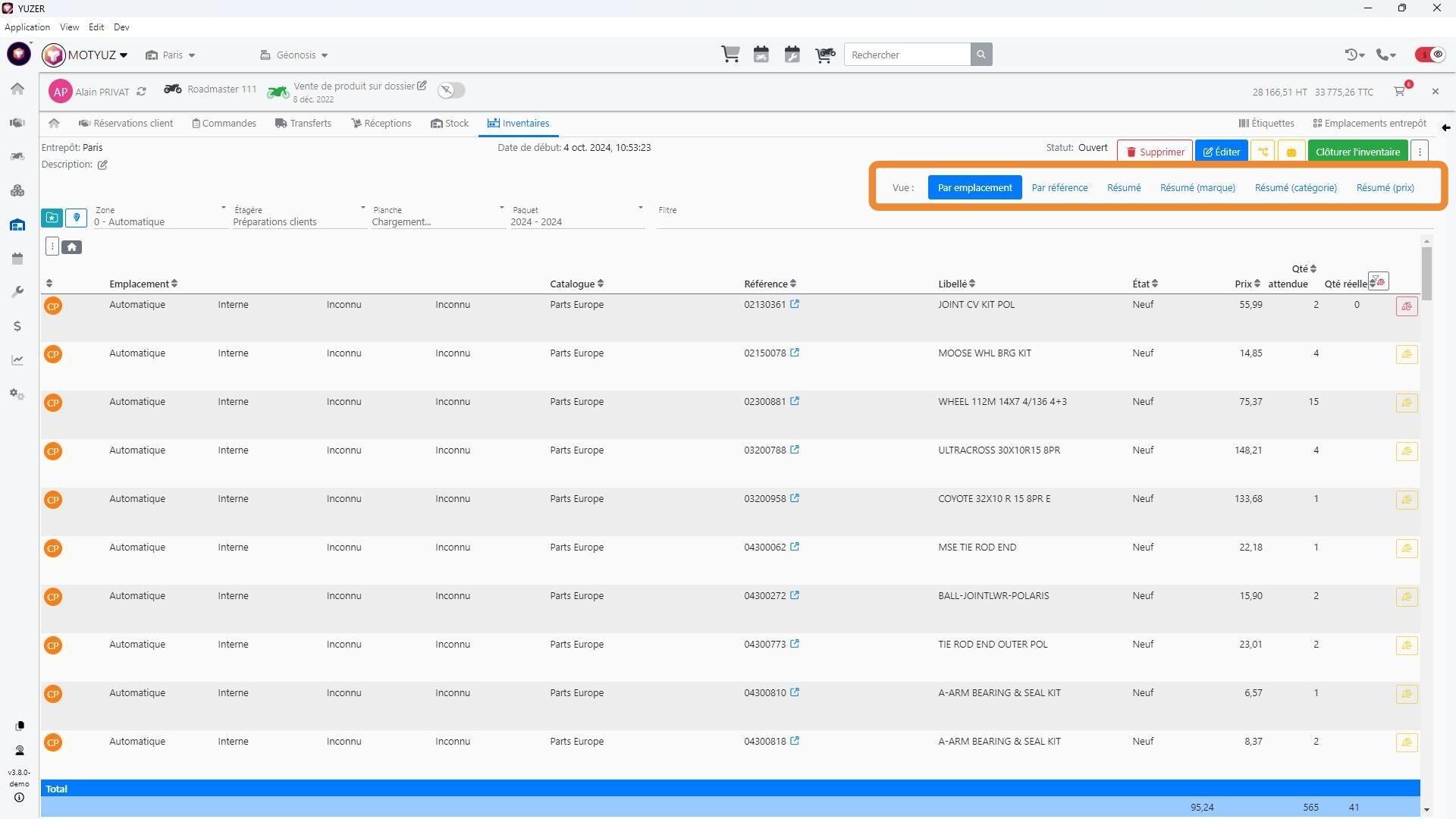 - Par emplacement : Vous voyez la liste des emplacements avec autant de lignes que de référence contenue dans cette dernière.