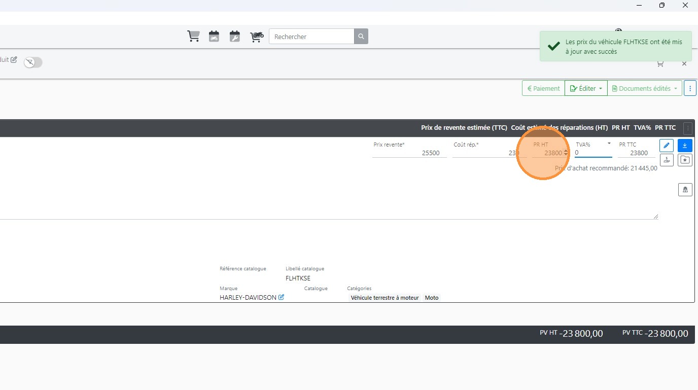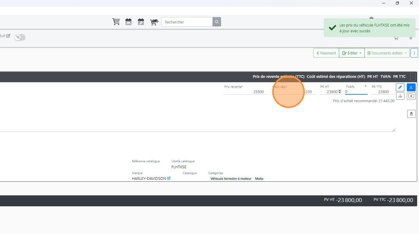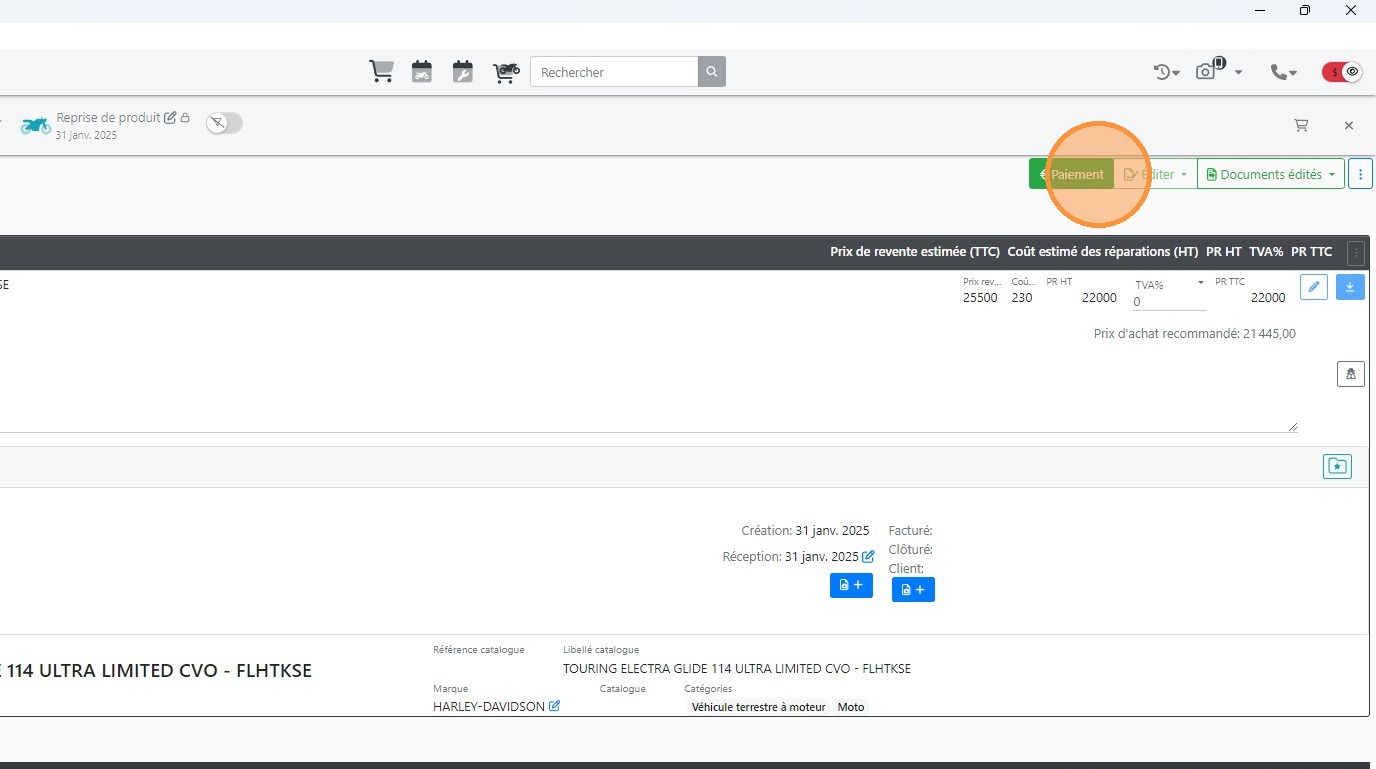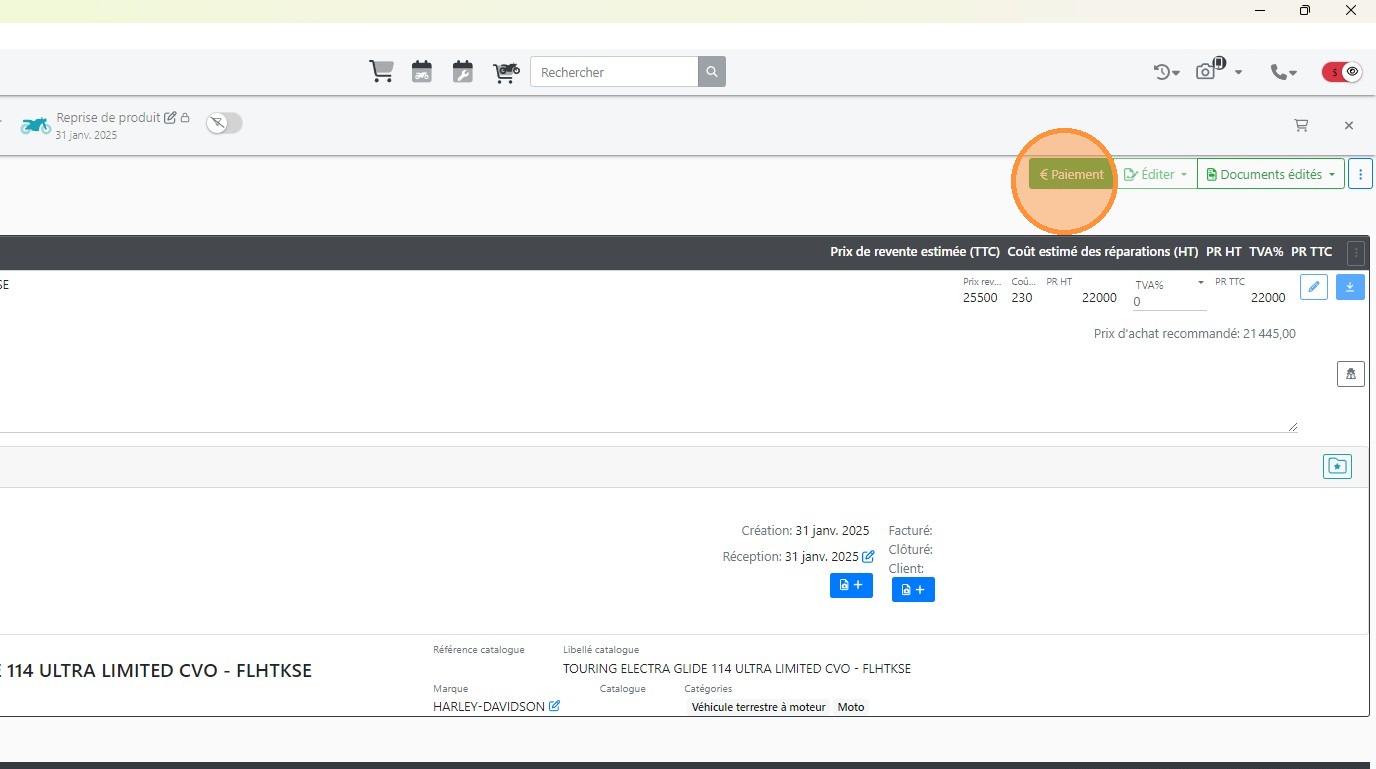 Enregistrer l'achat et la réception du véhicule