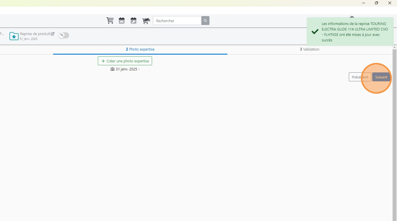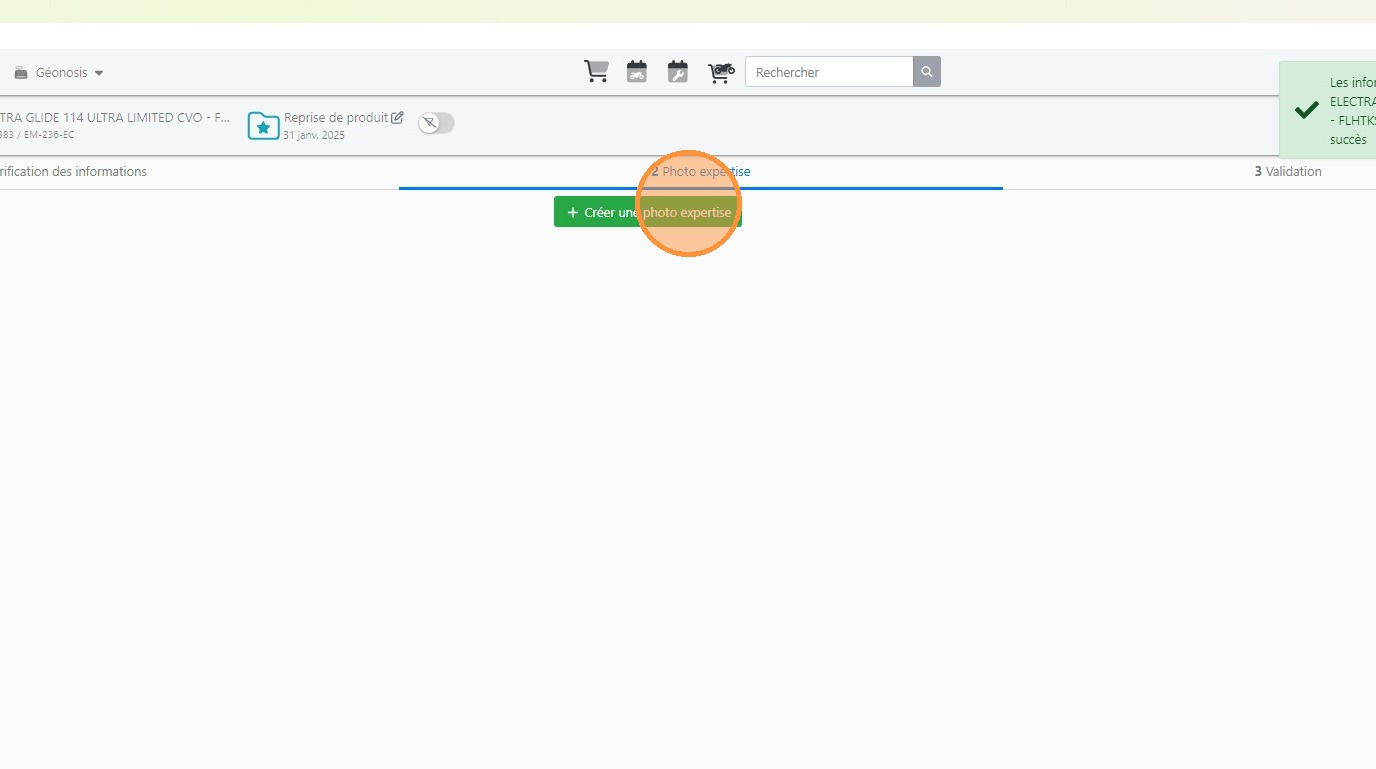 22\. Cliquer sur [[Créer une photo expertise]] pour prendre des photos du véhicules a son arrivée en stock.