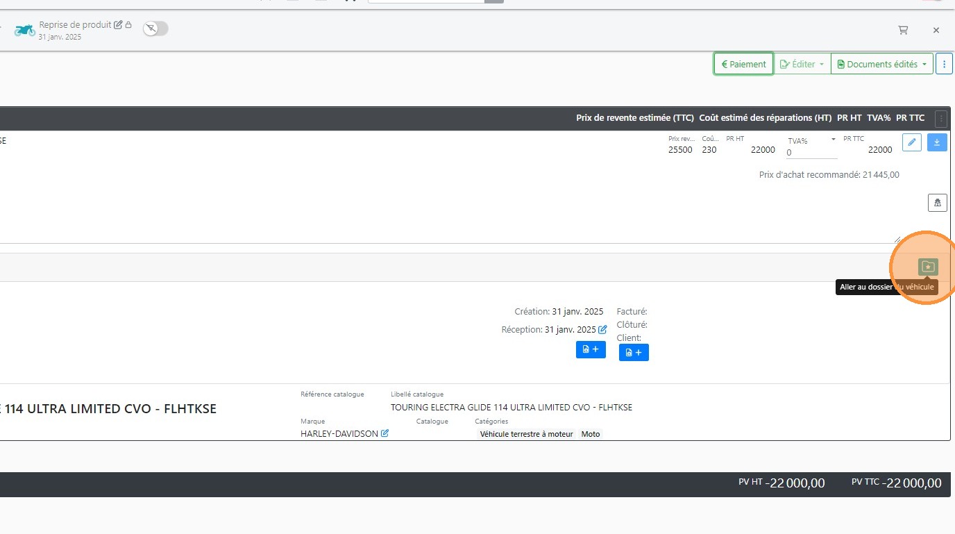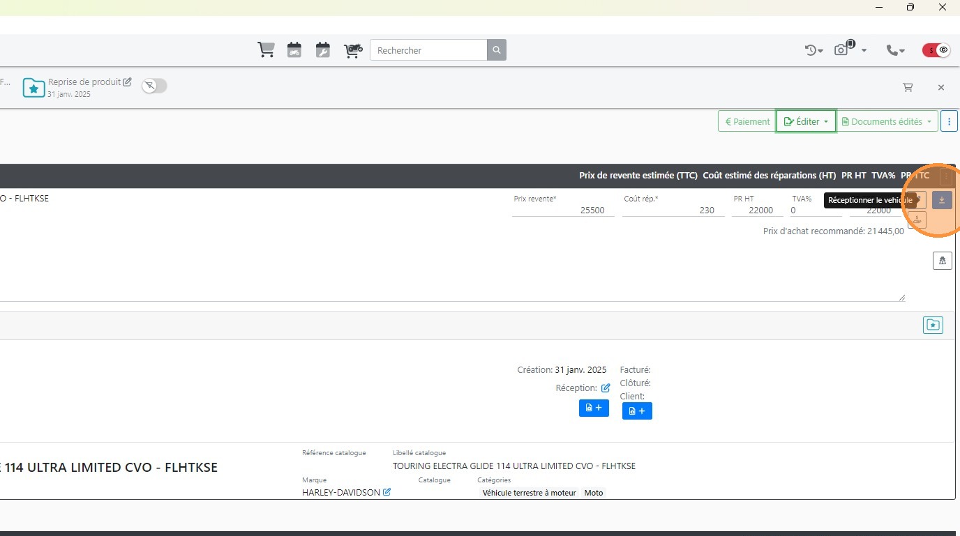 19\. Cliquer sur le bouton [[Réceptionner le véhicule]]