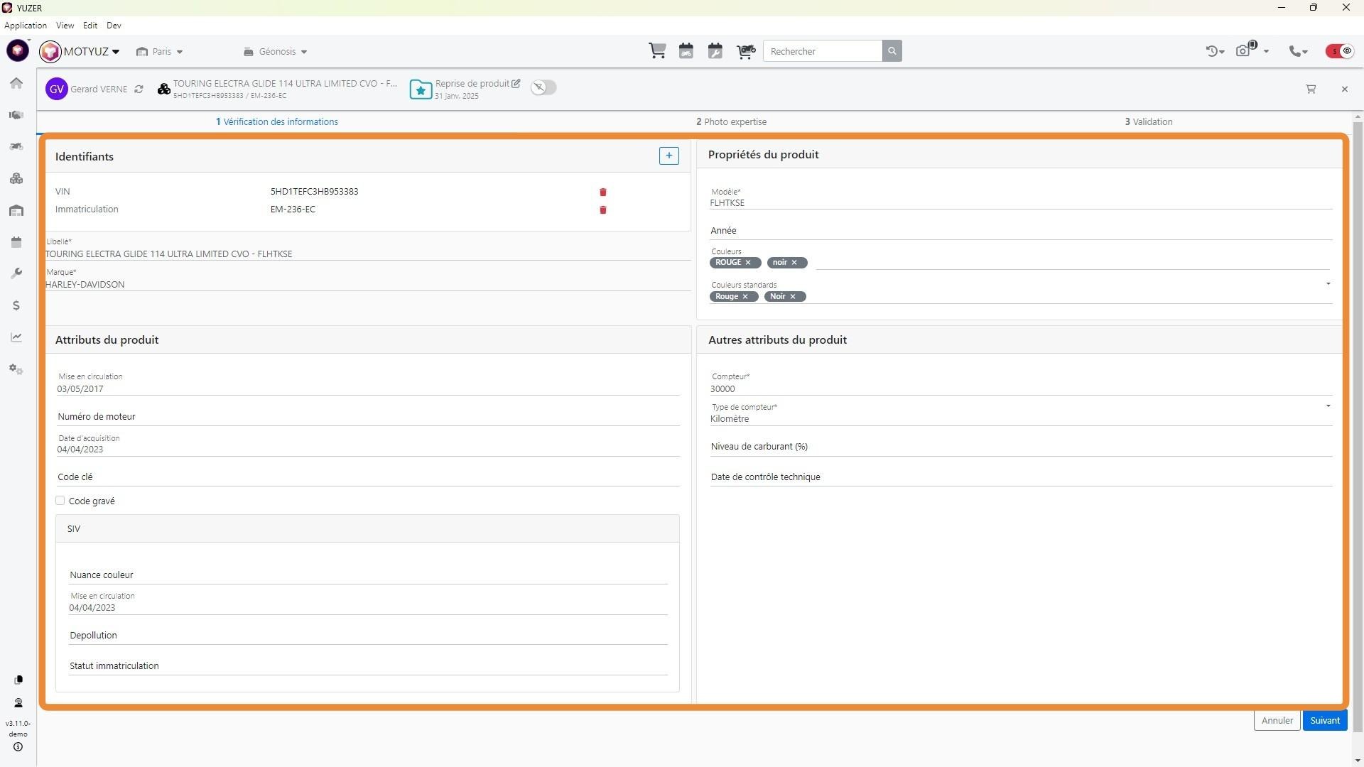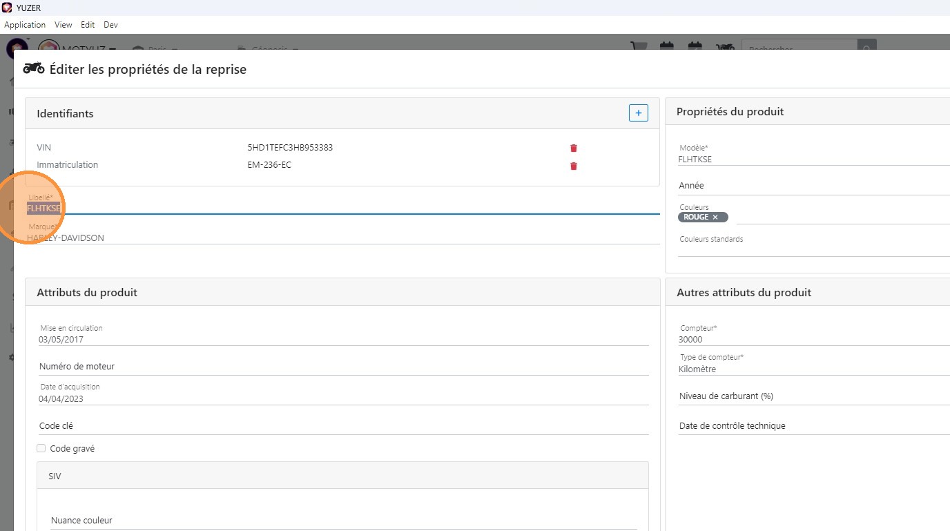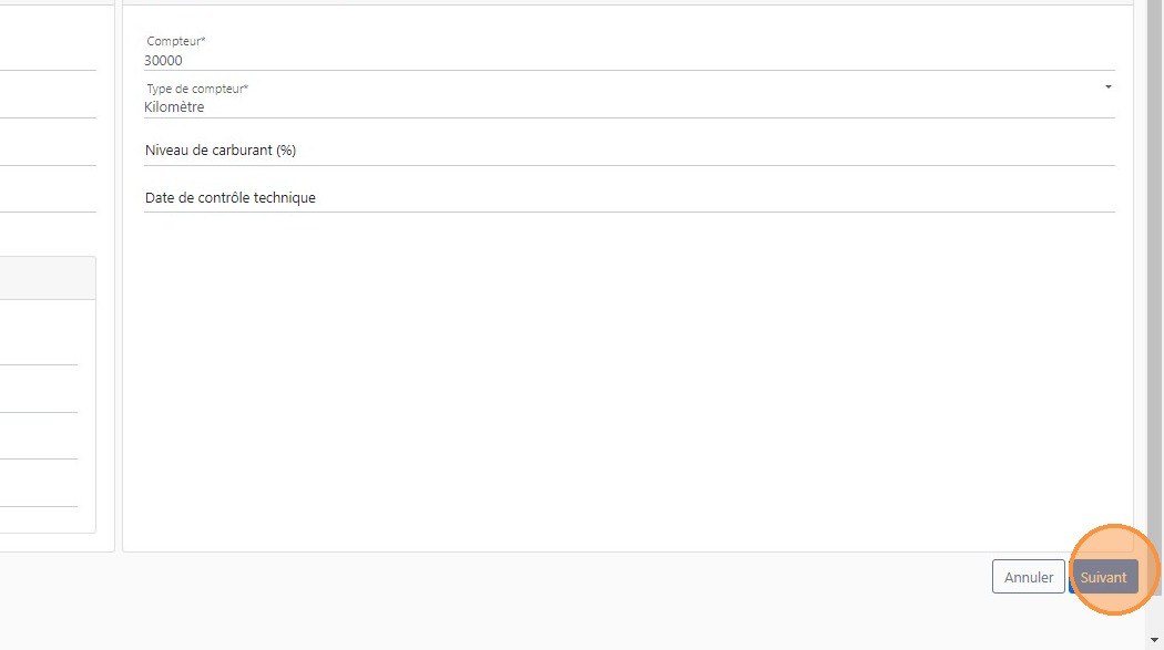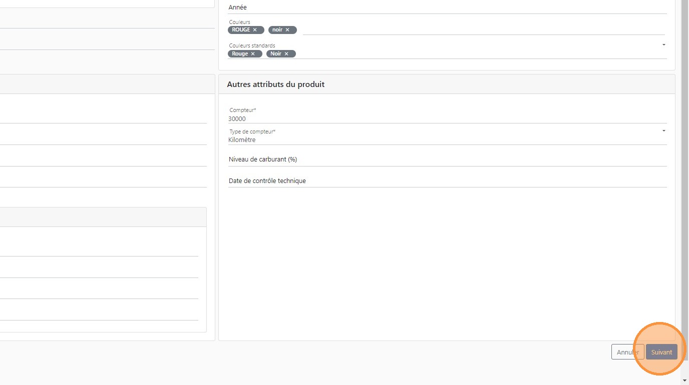 15\. Compléter l'ensemble des informations détaillées du véhicule dont le compteur, son unité puis les couleurs en priorité