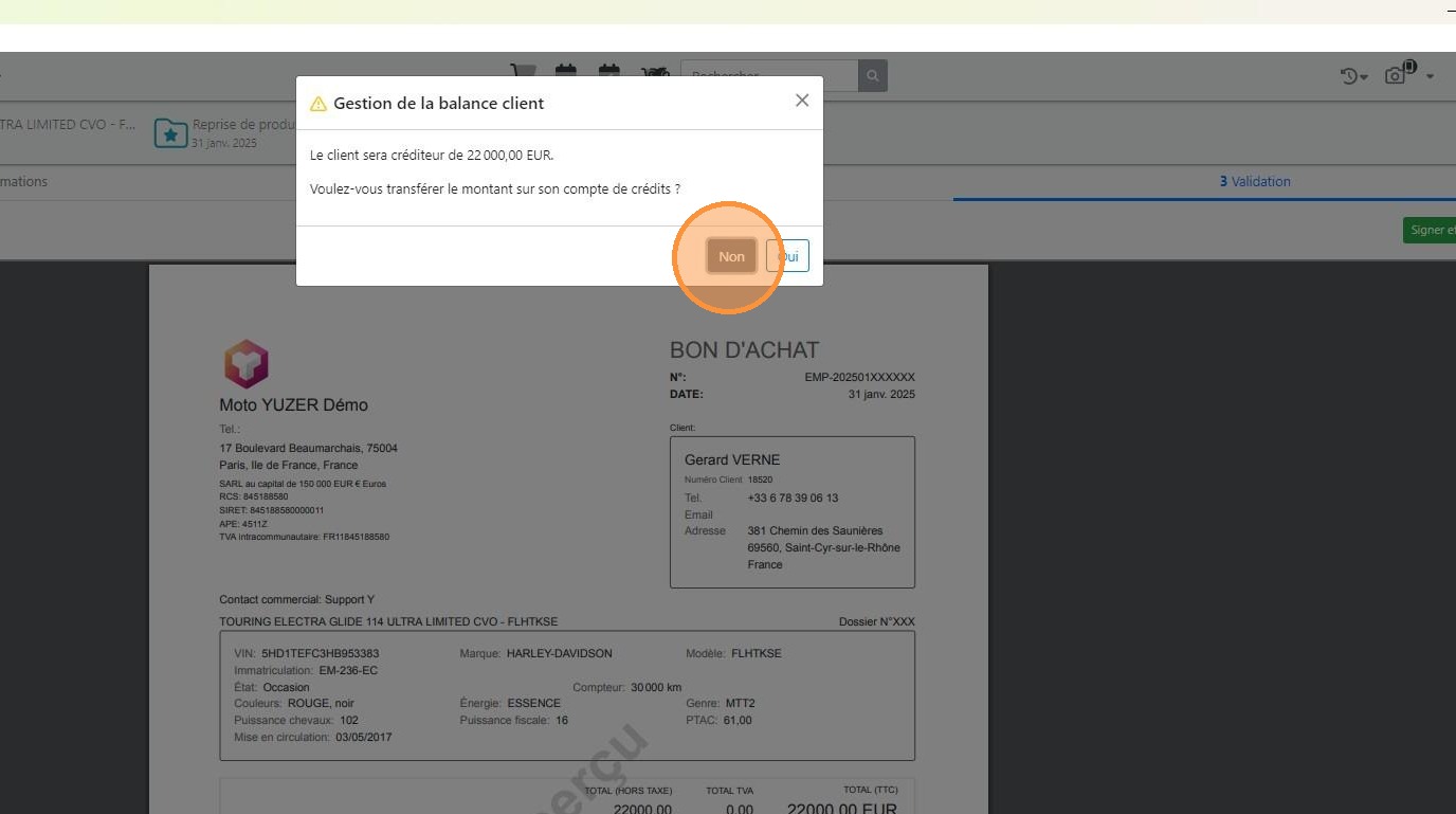 - [[Non ]]: si vous allez rembourser le client de tout ou partie de la valeur de rachat du véhicule