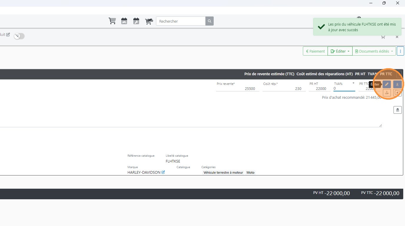 14\. Au besoin, Cliquer sur le bouton [[Editer]] pour entrer les informations détaillées du véhicule