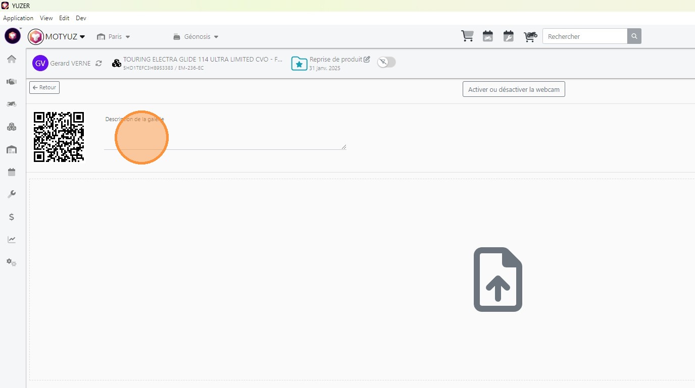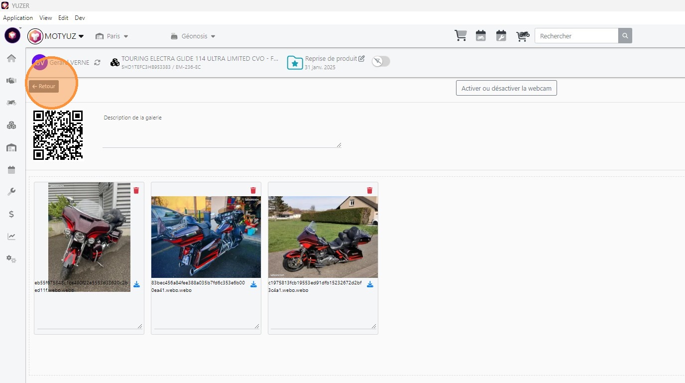 - Scanner le QR code depuis l'appli Yuzer pour prendre ou rajouter des photos