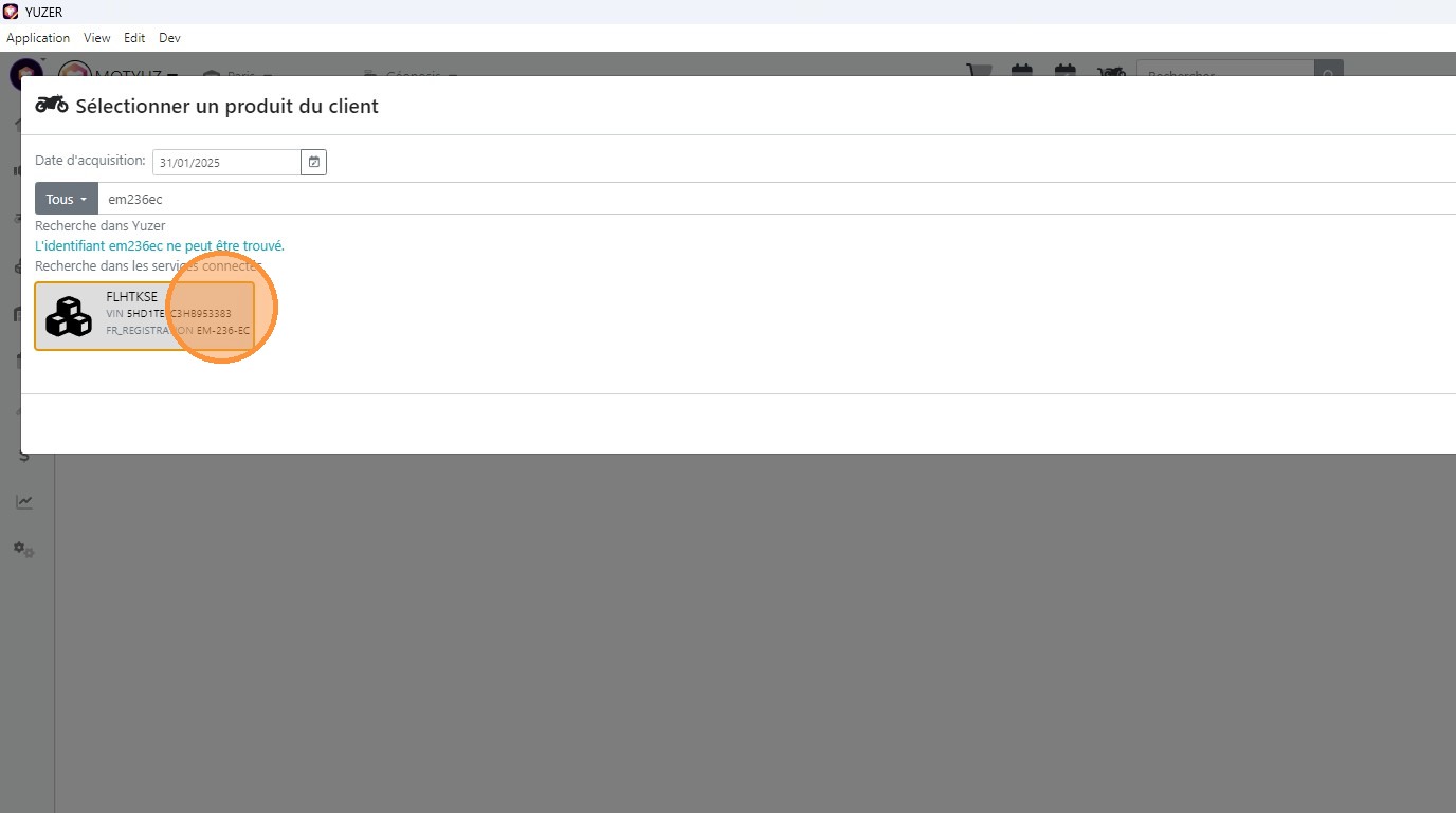 9\. Si le véhicule est reconnu cliquer dessus.