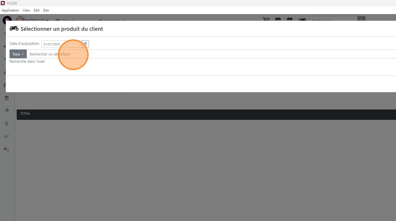 8\. Compléter le champ [[Rechercher un identifiant]] en saisissant son VIN / Immatriculation / N° Apic / ... puis appuyer sur [[Entrée]]