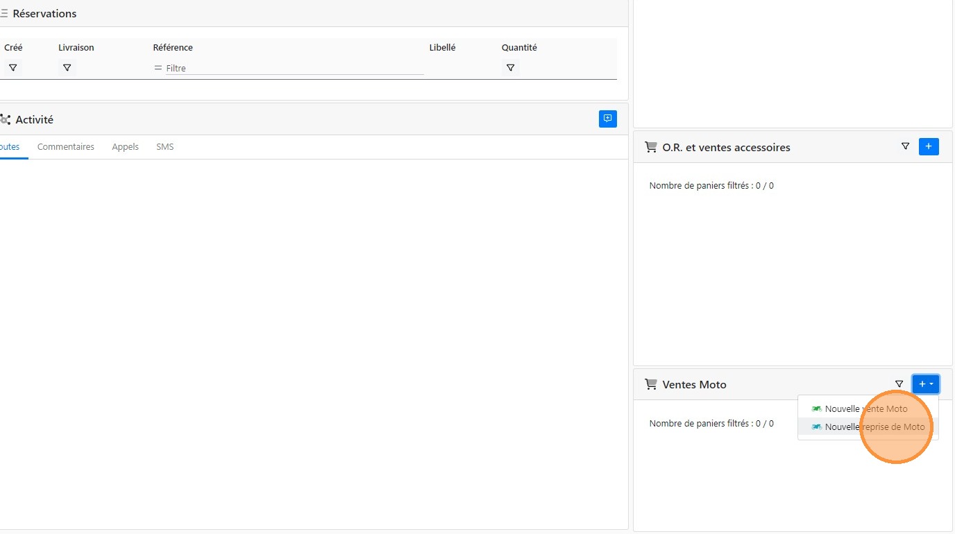 4\. Cliquer sur [[Nouvelle reprise de Moto]]