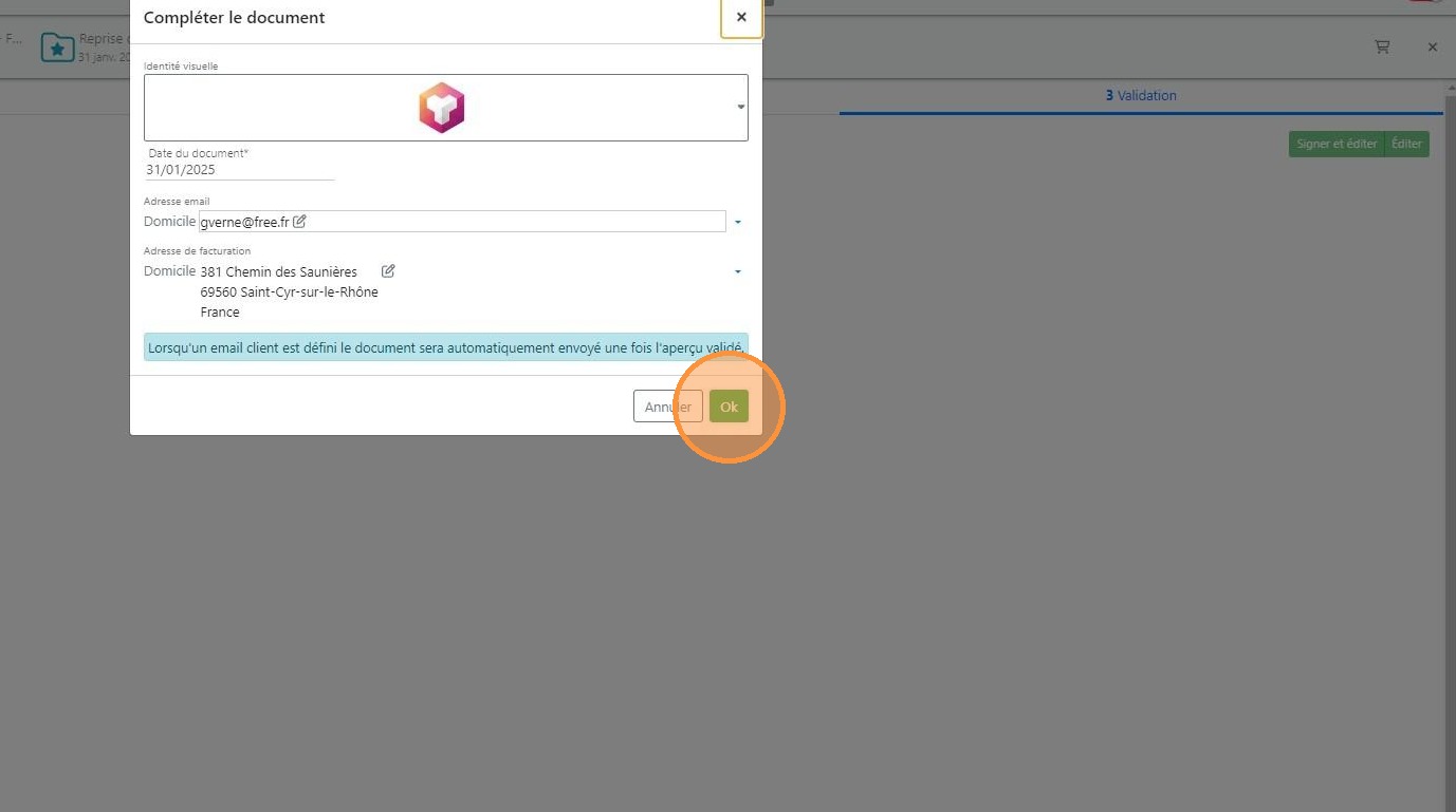 27\. Vérifier les coordonnées de votre client puis cliquer sur [[OK]]