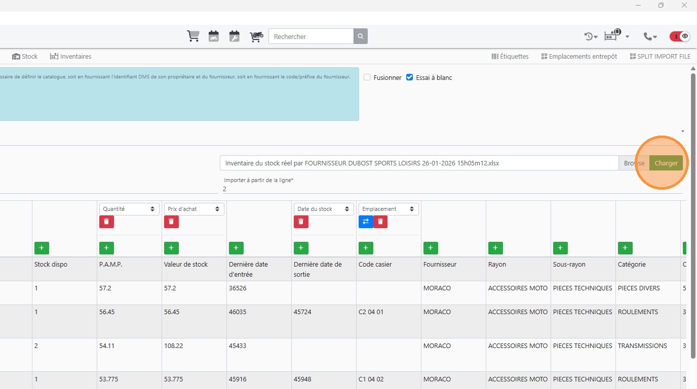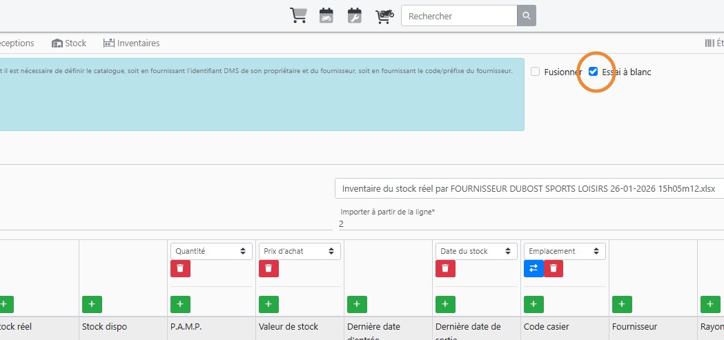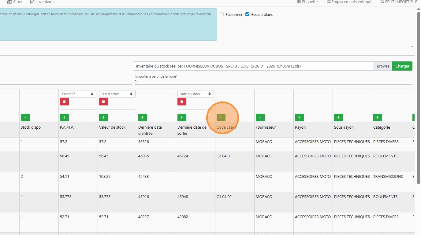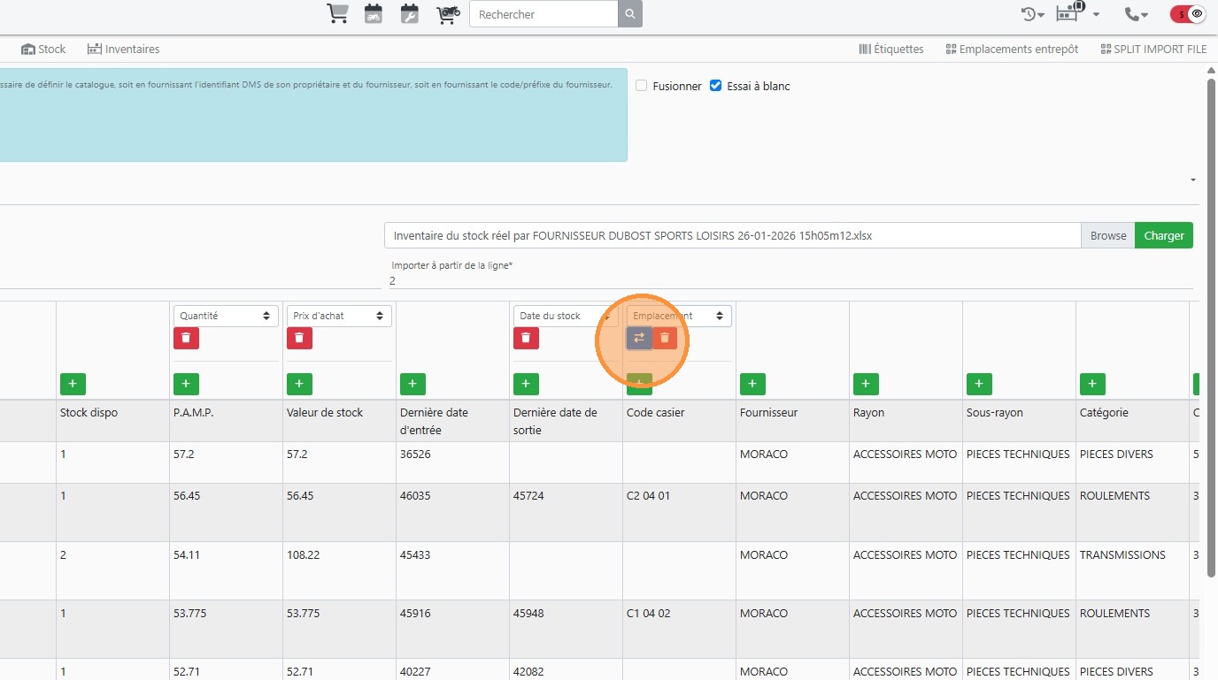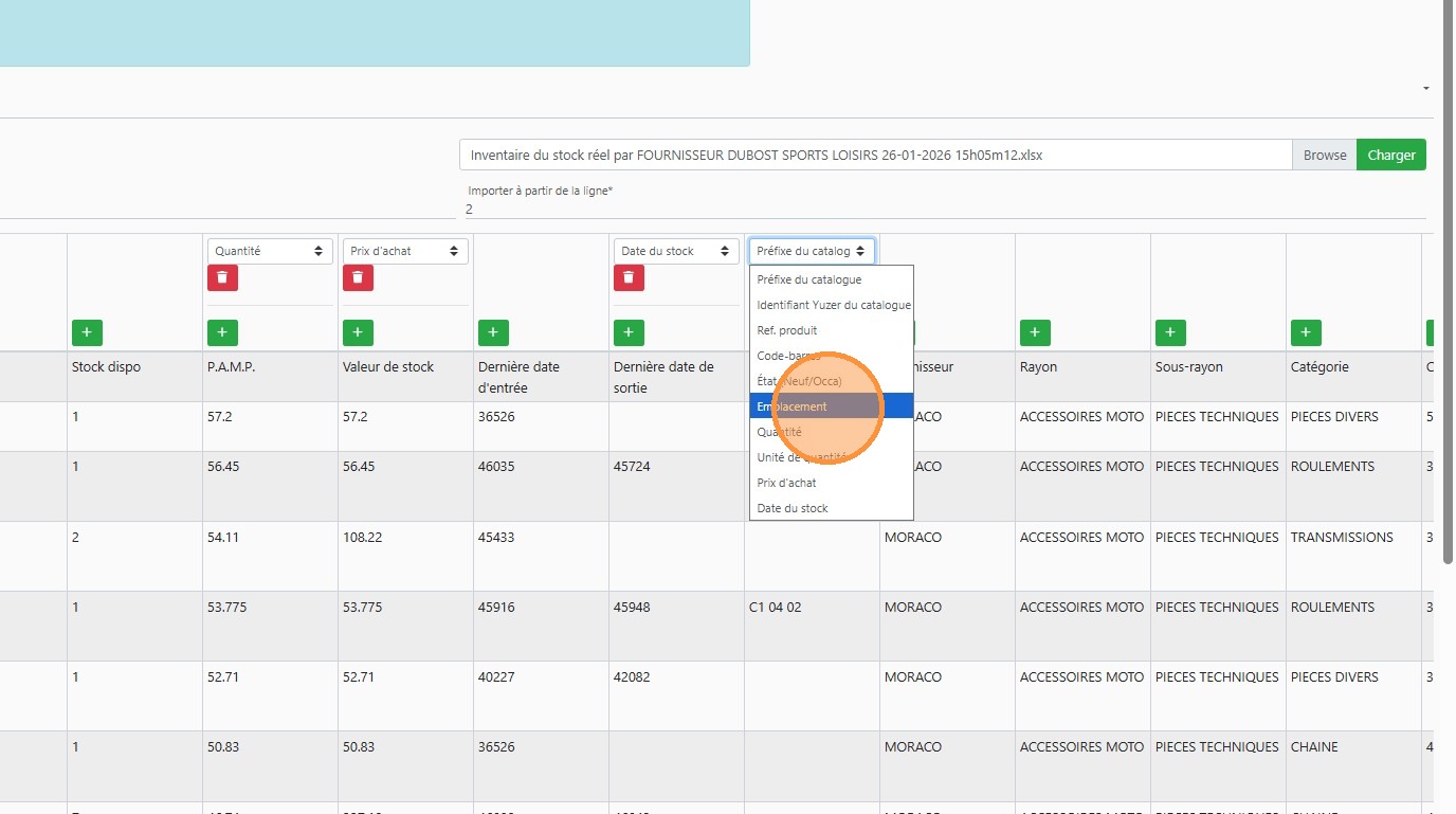 Importer le stock dans des emplacements définis