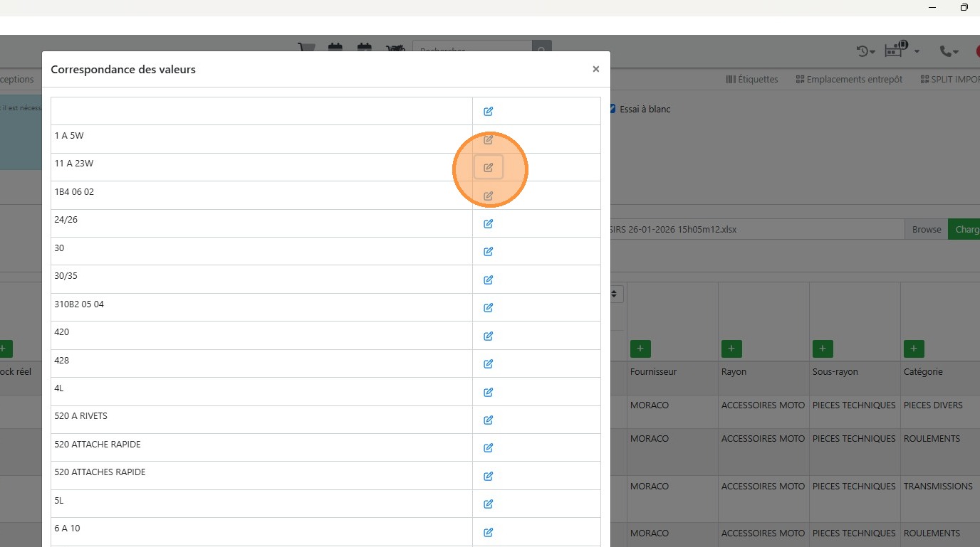 7\. Cliquer sur [[Editer]] pour chaque valeur de votre fichier